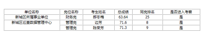 根據(jù)《2020年呼和浩特市新城區(qū)事業(yè)單位選調(diào)工作人員簡章》要求,2020年度呼和浩特市新城區(qū)所屬事業(yè)單位選調(diào)工作人員在考察環(huán)節(jié)時部分考生自愿放棄此次選調(diào)資格,現(xiàn)以考試總成績排名從高到低進行遞補(遞補人員名單如下),并按簡章規(guī)定進行考察、體檢、公示等程序。 ...