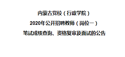 內(nèi)蒙古黨校(行政學院)2020年公開招聘教師(崗位一)筆試及閱卷工作已經(jīng)結(jié)束,根據(jù)《內(nèi)蒙古黨校(行政學院)2020年公開招聘教師簡章》有關(guān)規(guī)定,現(xiàn)將筆試成績查詢、資格復(fù)審及面試有關(guān)事宜通知如下: ...