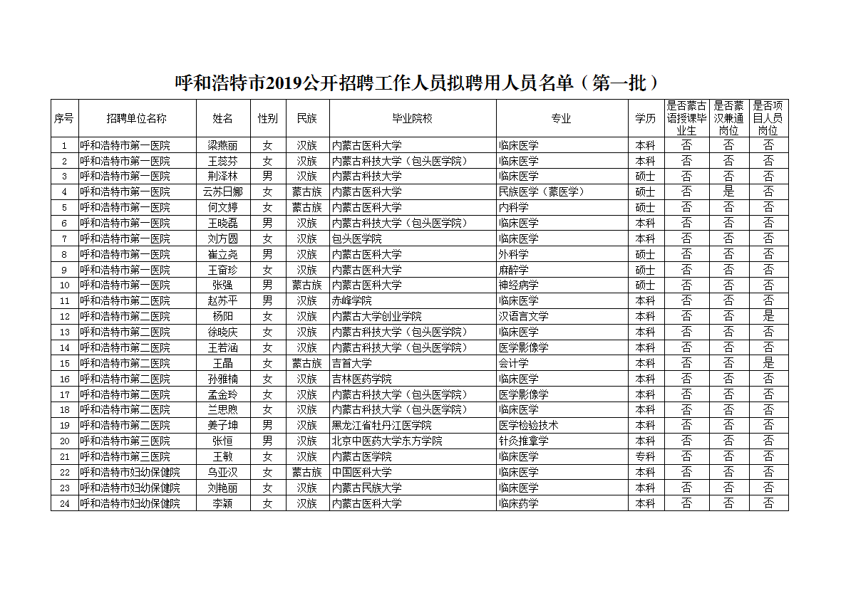 根據(jù)《呼和浩特市2019年事業(yè)單位公開招聘工作人員總體方案》,經(jīng)報名、筆試、面試、體檢、各用人單位主管部門和用人單位考核合格,現(xiàn)將呼和浩特市2019年事業(yè)單位公開招聘工作人員擬聘用人員名單(名單詳見附件)進行公示。 ...